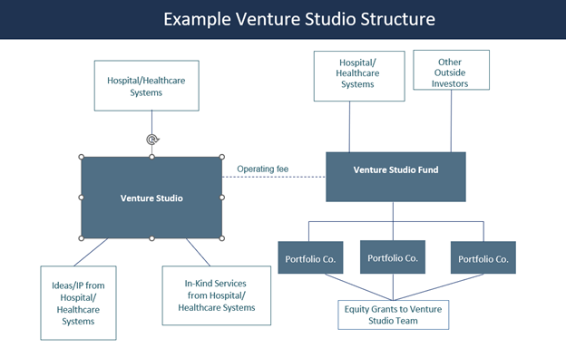 Venture studios enable the healthcare systems to take both literal and metaphorical ownership in finding solutions for the needs of their patients while not having to worry about the business side of running a successful start-up company. Through allowing those within the healthcare industry to drive innovation and those within the venture capital world to drive the business side of a start-up company, venture studios can accelerate the advancement of life-changing technologies in the healthcare sector to improve patient care, practitioner abilities, system-wide efficiency, and the bottom line.
