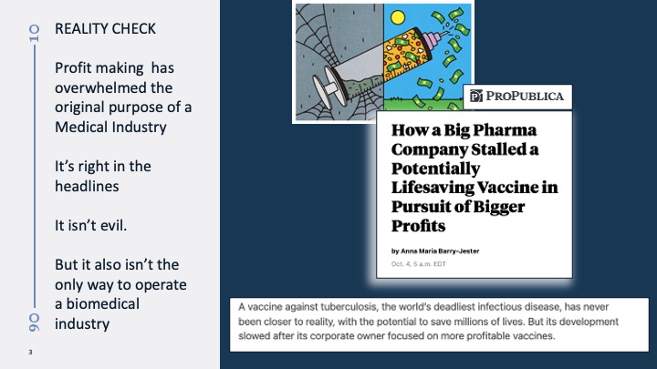 Even the for-profit corporations that lead the current biomedical industry (v1.0) should be among those willing to step in to help fill the capital gap through more impact-focused financing in order to demonstrate commitment and accountability to public health and to healthcare accessibility, not to mention their patient-first claims.